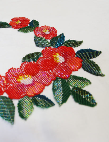 京都に生まれ育まれた審美眼を生かし、洋の東西を問わず、美しい地模様や葉っぱ、お花のモチーフをデザインし、ビーズ織物地に表現します。「手しごとのビーズ織物地を如何に美しく心を込めて織り上げ、仕上げるか。」を命題にし、長い歳月を経て培った確かな技術を生徒の皆さま方、おひとりおひとりに寄り添って、懇切丁寧にご指導・ご伝授させていただきます。1人でも多くのビーズ織物をこよなく愛する方々とのお出会いが紡ぎ出されますように…。名古屋・小林教室にてお待ちしています。
